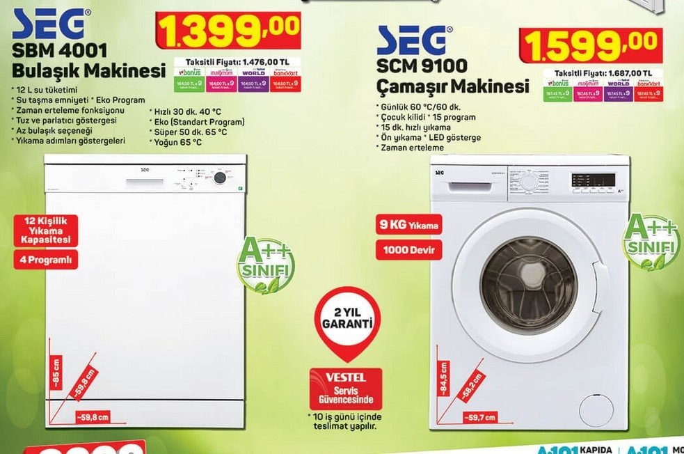 A101 19 ekim 2017 çamaşır makinesi. A101 de bu hafta 599 tl fırsat fiyatı ile satışa sunulan seg scm 7100 t çamaşır makinesi alınır mı ve özellikleri neler diye soranlar için hemen özelliklerini listeleyelim. Kiwi cyclone elektrikli süpürge 109 tl. Bu sayfadan katalogları gezebilir dilerseniz sosyal medyada paylaşabilir veya katalog görsellerini tam boyutu ile görüntüleyebilirsiniz. A101 market 19 ekim 2017 aktüel kataloğu incelememizde ilk broşür sayfasında seg çamaşır makinesi yer alıyor.
