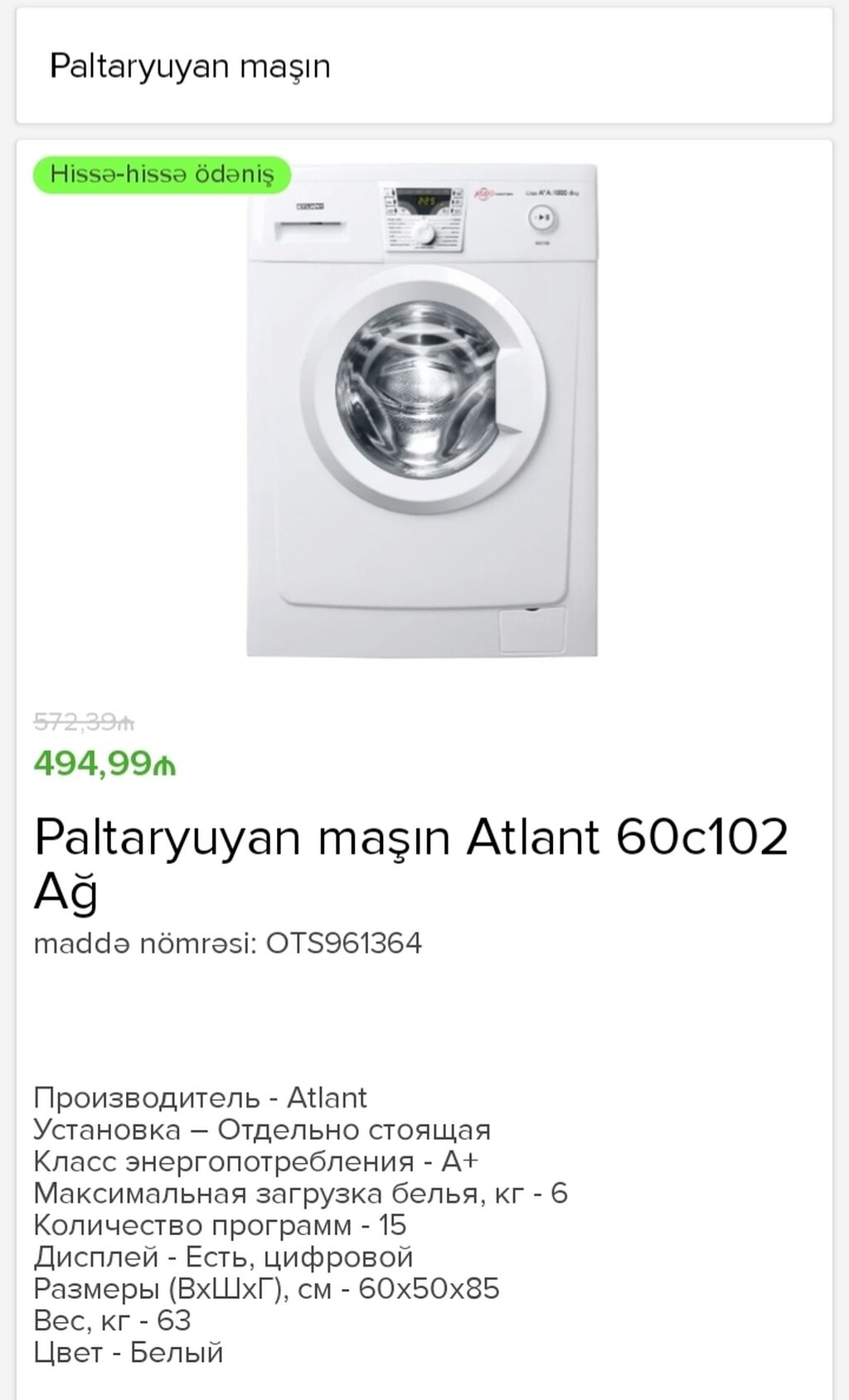 Atlant çamaşır Makinesi