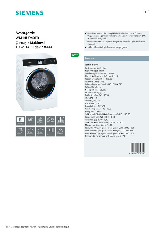 Siemens wm14u940tr avantgarde a 10 kg 1400 d d çamaşır makinesi home connect uygulaması 16 farklı leke tanınıma. Ses ile kontrol edilebilir çamaşır makinesi. çamaşırlarınızı yıkarken en iyi sonucu elde etmenizi sağlayacak olan model akıllı çözümleriyle. Siemens avantgarde wm14u940tr çamaşır makinesi 10 kg 1400 devir a nerede olursanız olun kolaylıkla kullanılabilen home connect uygulaması ile çamaşır makinenize bağlanın ve kontrol edin.