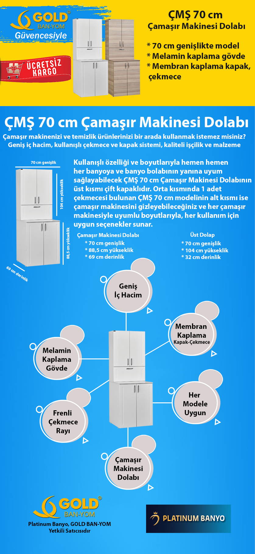 çamaşır ve bulaşık makineleri standart ölçüleri 60x60x85 dir modellerde genelde sadece derinlik ölçüsü değişir genişlik ve yükseklik aynıdır. Kiralık bir evde oturuyorsanız ve banyodaki dolap eksikliğinden şikayetçi iseniz çamaşır makinesi dolaplar ihtiyacınızı en iyi şekilde karşılar niteliktedir. Bu süitlerin çoğu genellikle standart bir düzeni olan. Lavabonun altına gömmek için üretilen cihazların ayırt edici özellikleri.