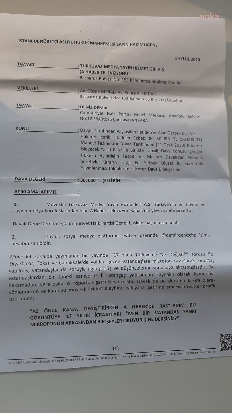 Kendisine açılan davayı yine twitter hesabından duyuran chp li demir şu ifadeleri kullandı.